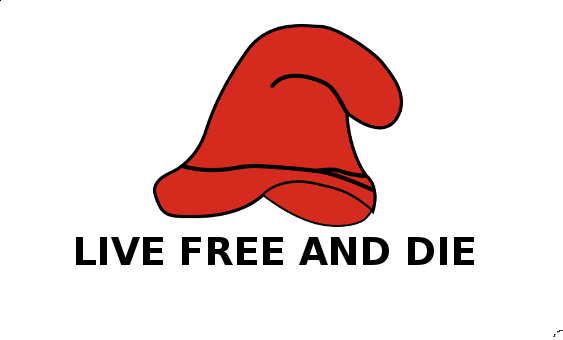 I really hate the phrase "live free or die". It's catchy but it's illogical. The problem is it was written by people actually willing to fight for their freedoms, to die in service of the cause of freedom. Now it's a rallying cry for libertarians and centrists who favor small government. But the fact is, few people believe it. I submit the picture above as the logically correct flag for americans today. It's not a political statement, it's a guarantee.